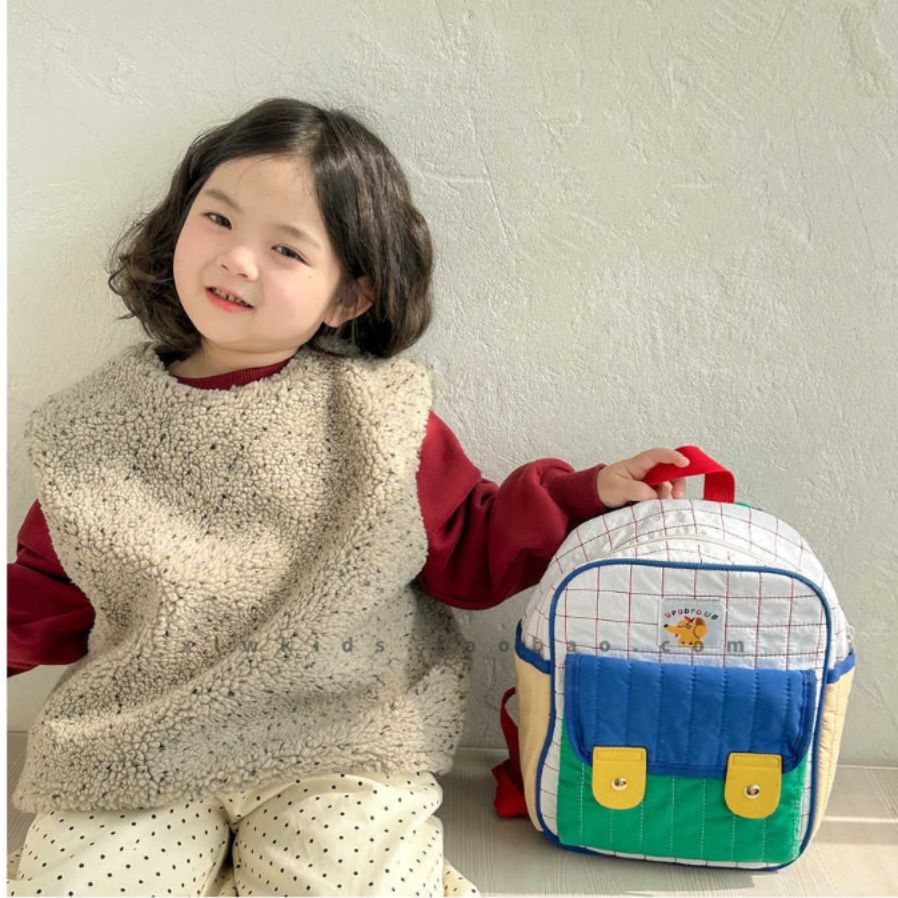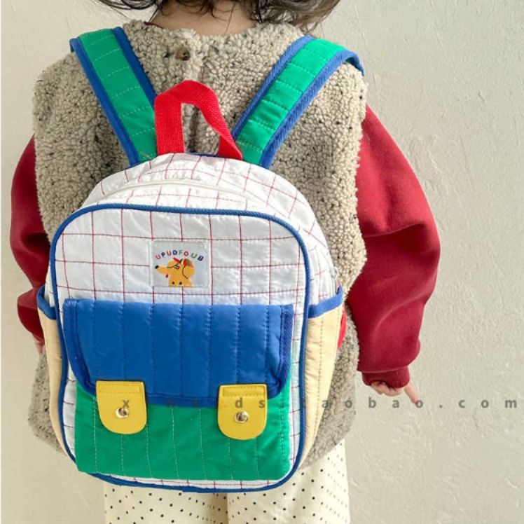 格子柄のキルティング生地が可愛らしい子どもリュックです。 普段使いに最適な軽量設計で、幼稚園や保育園のお出かけにぴったり。 正面には便利な二つのポケットが付いており、小物の収納も簡単です。 カラフルな配色と丈夫な作りで、元気いっぱいのお子様の毎日をサポートします。 肩紐は調節可能で、成長に合わせて長くお使いいただけます。