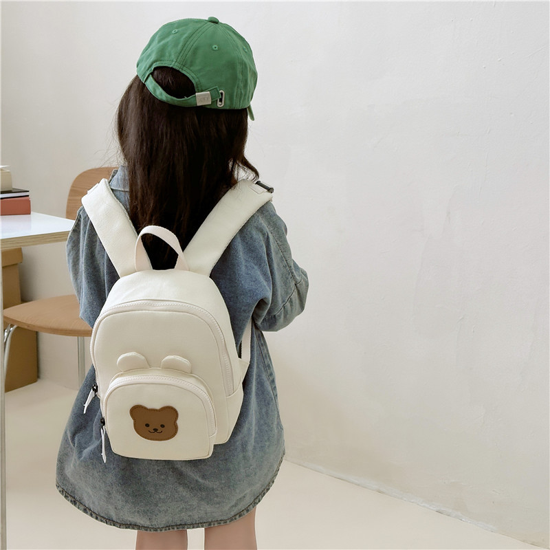 可愛らしい動物の耳と笑顔デザインが特徴的な子どもリュックです。