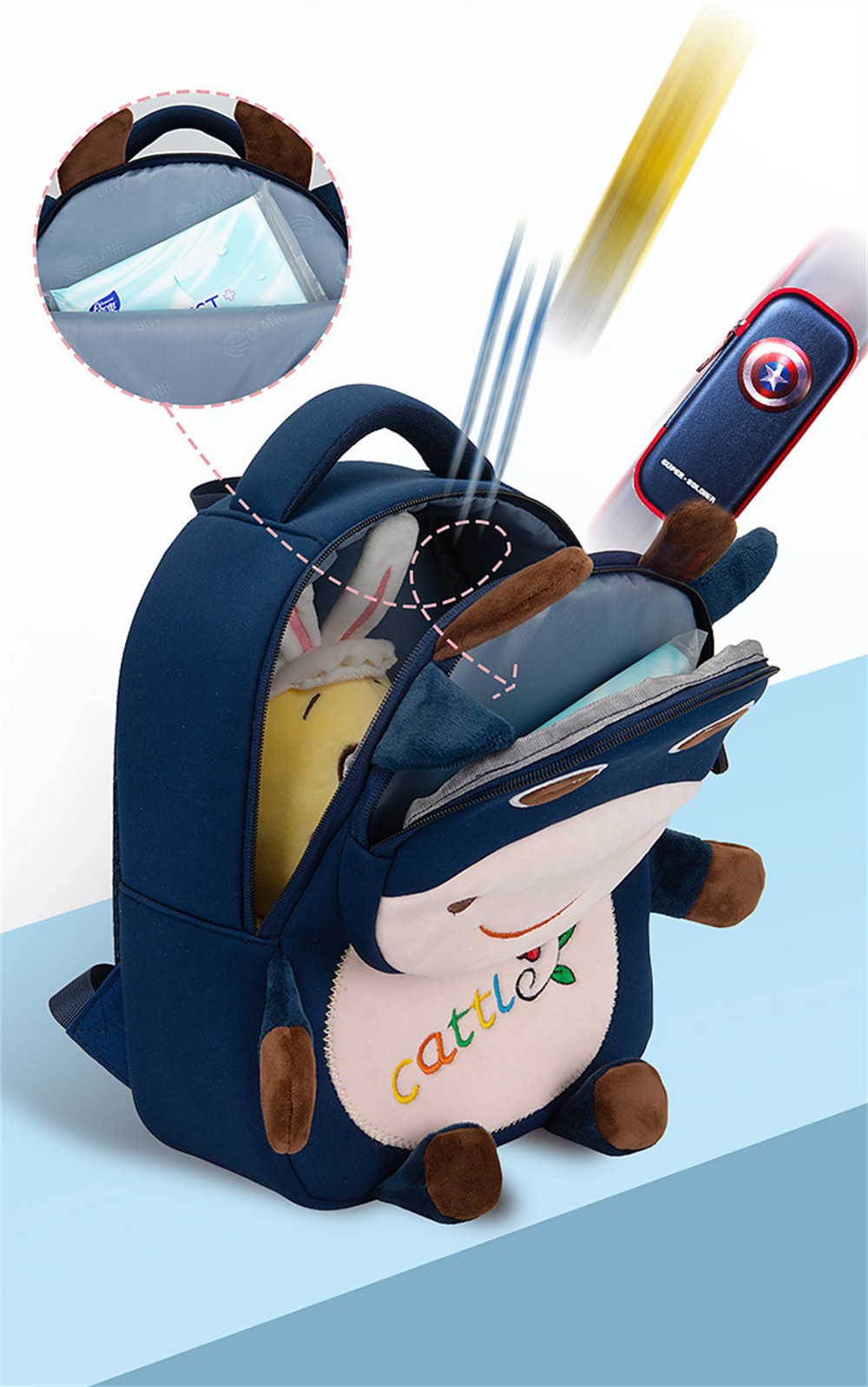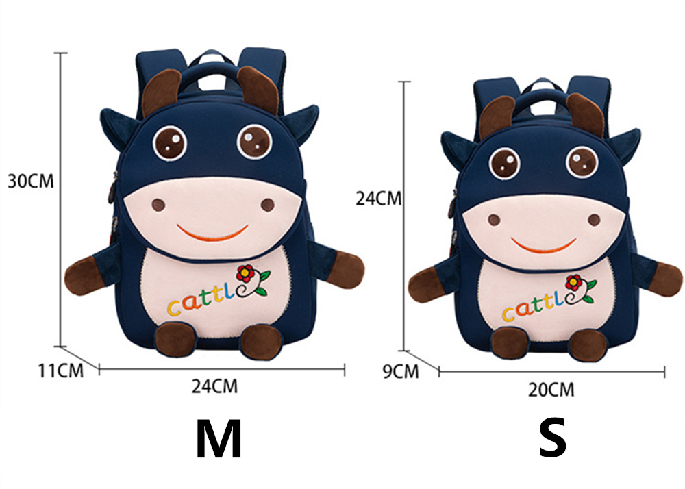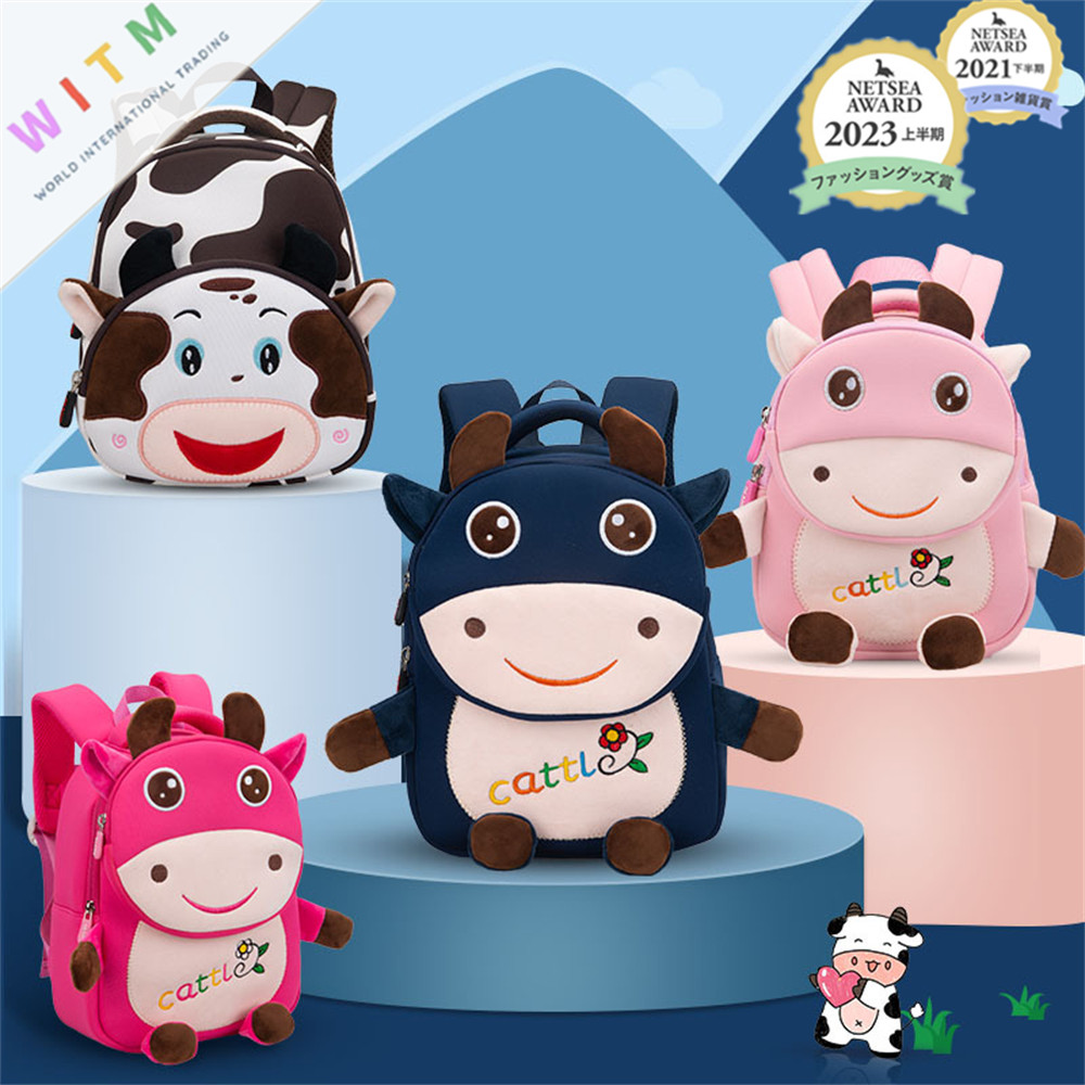 迷子紐付きで安心安全な子どもリュック! 可愛い牛の動物柄で通園や遠足にぴったり。 ふわふわ素材で軽量設計、お子様の毎日のお出かけを楽しくサポートします。