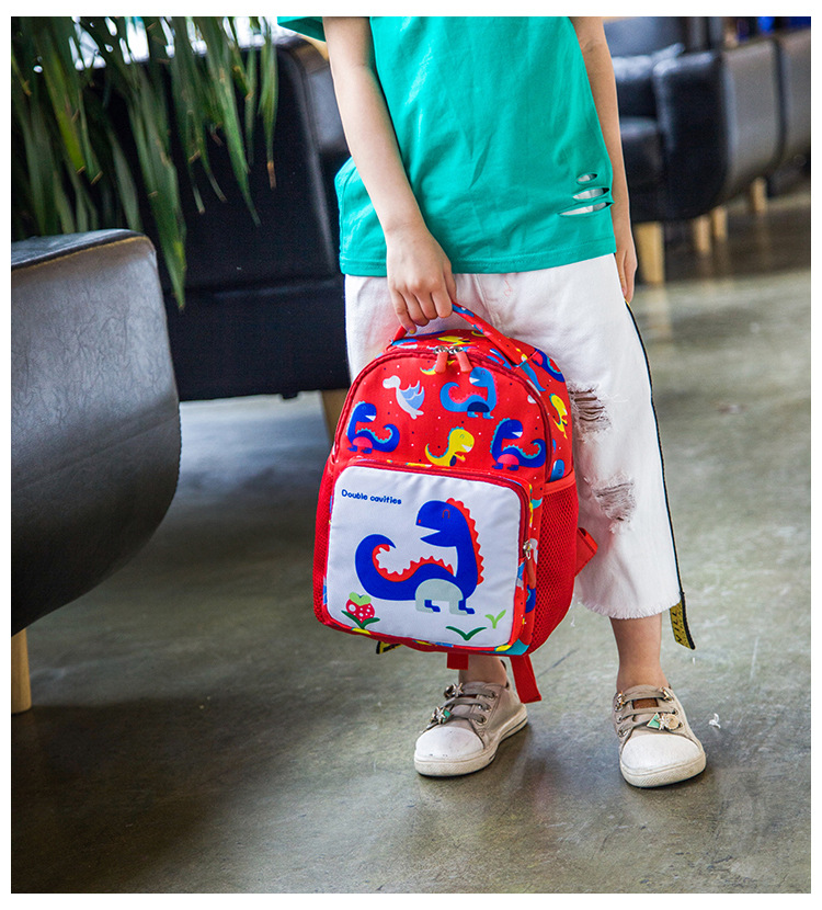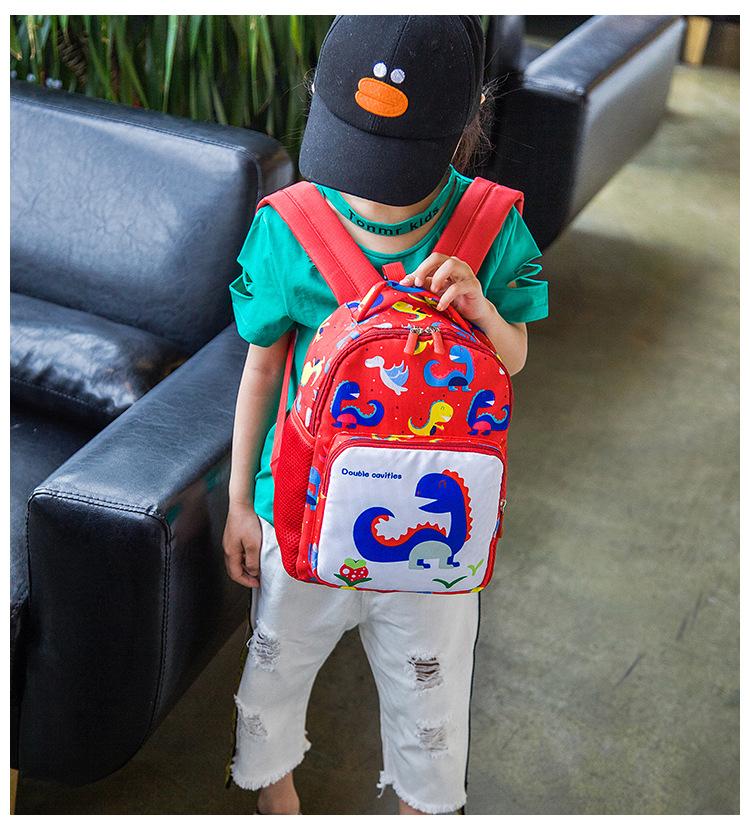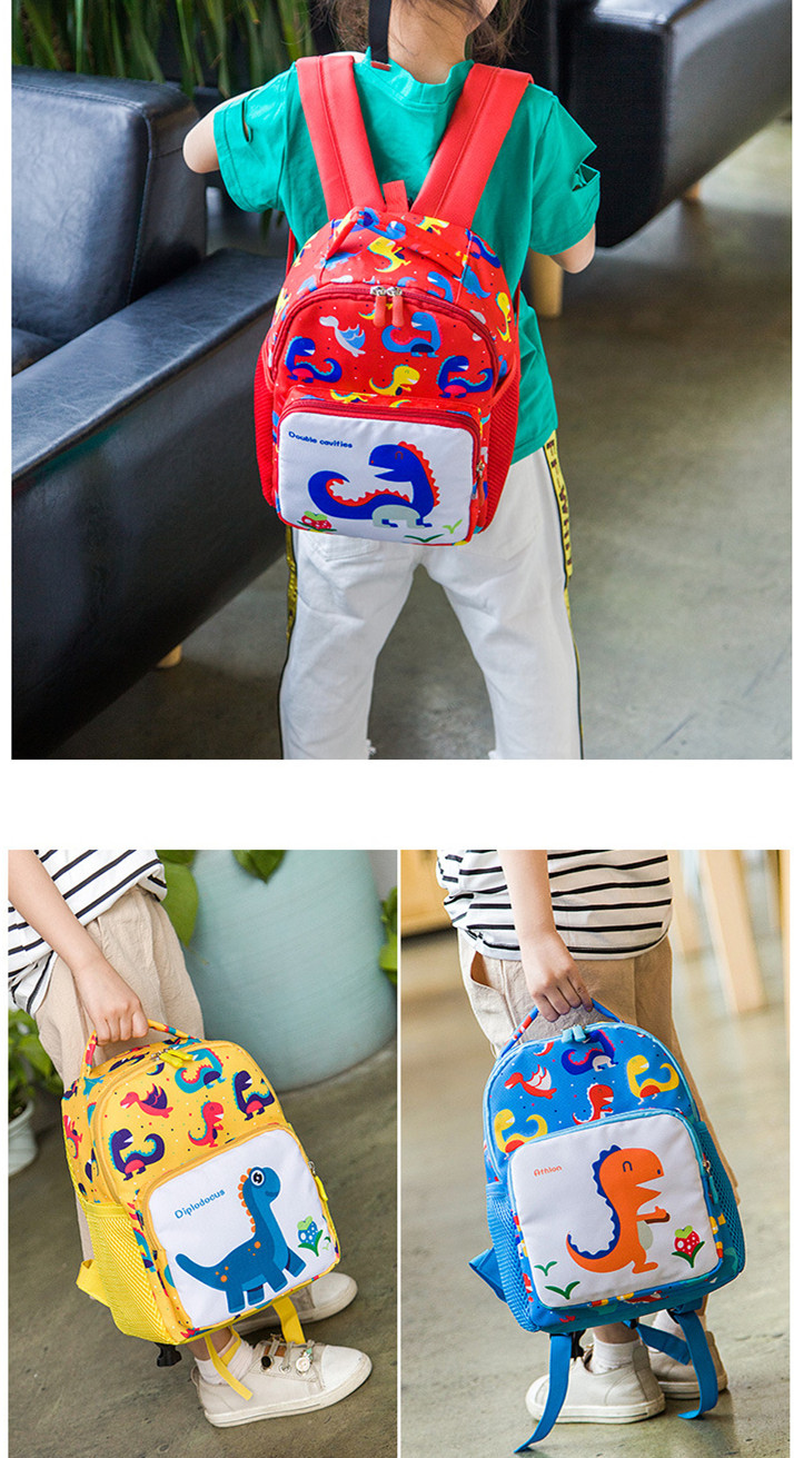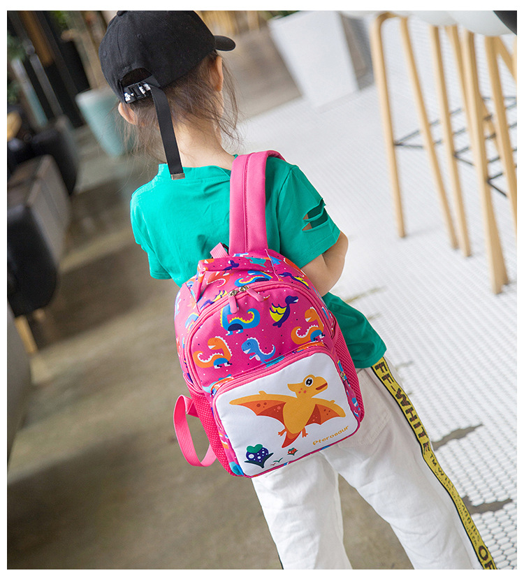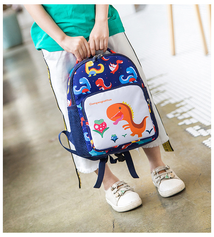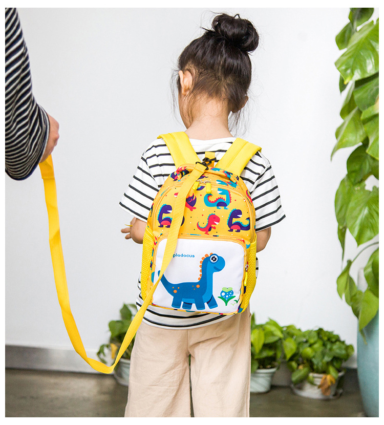 可愛い恐竜柄が印象的な子どもリュックです! 迷子ひも付きで安心安全、通園やお出かけに最適! 手に馴染みやすいサイズで、お子様の成長をしっかりサポートします。