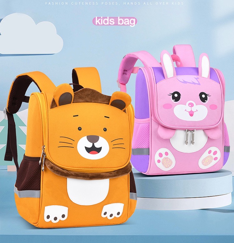 可愛いライオンとうさぎのデザインが特徴的な子どもリュックです。