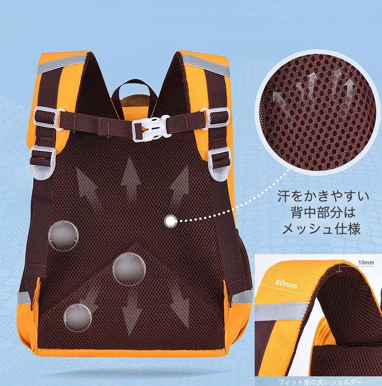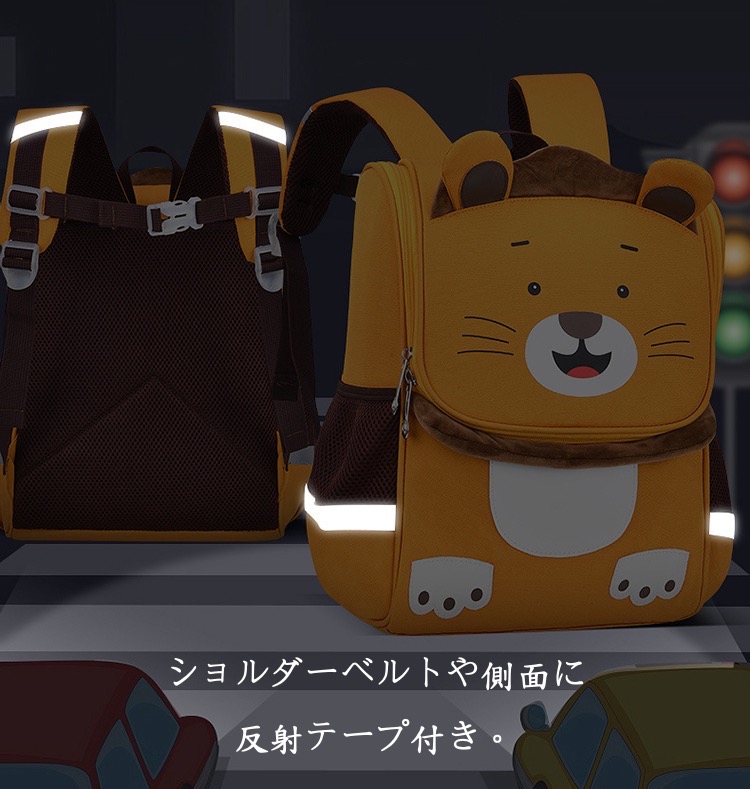 ■コメント 可愛い動物デザインが大人気!登場☆ 小学生低学年から高学年まで対応するリュックサック(大/小 2type)です。 背面はメッシュ素材で通気性がばっちり☆活発なお子様も蒸れる心配はありません。 人体工学に基づいた背負いやすい設計! ショルダーベルトや側面に反射テープ付き。夜間の視認性向上。 日常、通園通学、ピクニック等色んなシーンで活用できます。 ■サイズ(約cm) 画像に記載 ■重さ 250g/350g ■カラー 画像に記載 ■主素材 ナイロン ■内ポケット なし