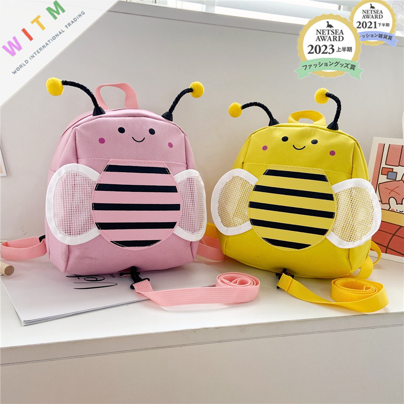 かわいい蜜蜂をモチーフにした子どもリュックです。 迷子紐付きで安心安全、通園やお出かけに最適です。 ふわふわの羽とにっこり笑顔が魅力的で、 お子様が喜んで背負ってくれること間違いなしです。